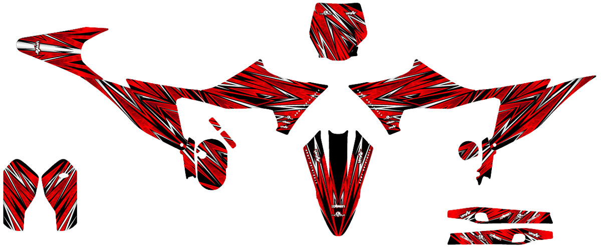 Våre grunnpakker inkluderer luftinntak, plater, skjermer og gaffelbeskyttelser. Vi tilbyr som tillegg matchende design for felgkanter og svingarmer for å gi en fullstendig visuell helhet til din elektriske motocross.