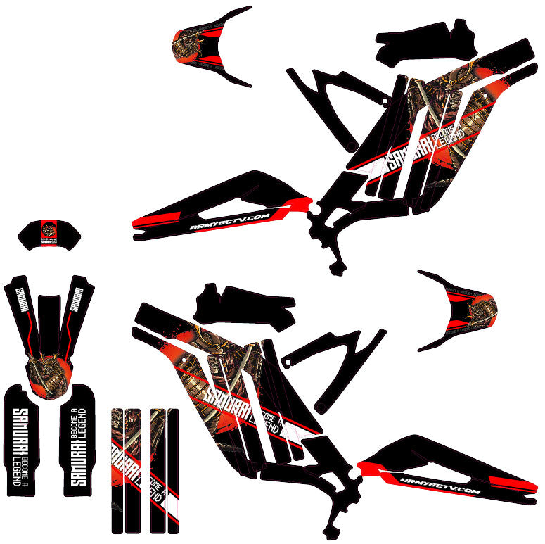 🎨 Dekalsett Samourai for Sur-Ron Light-Bee : Gi din elektriske motorsykkel et krigersk og elegant utseende samtidig som du nyter godt av robustheten og kvaliteten til premium klistremerker.