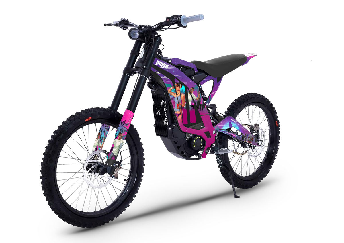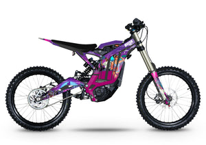Neonvibrant look med dette Vice City dekorsett for Sur-Ron Light-Bee. Moderne urban design, premium-klistremerker ultrarobuste og optimal kåpebeskyttelse. Enkel montering uten bobler.