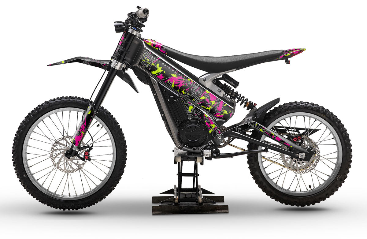 Trå inn i personaliseringens tidsalder 2.0 med våre grafiske dekorer laget for ledende modeller innen elektrisk motocross. Våre teknikere har utviklet eksklusive skjæremønstre for serien Talaria Sting (MX3, MX4, MX5), samt for by- og frikjøringsversjoner som Talaria XXX og Komodo. Vi tilbyr også full ekspertise for eiere av Sur-Ron, med millimeterpresise maler for den legendariske Light Bee, den kraftige Ultra Bee og enduromodellen Storm Bee. Våre høyytelses vinylfilmer beskytter dine spesielle deler og rammen mot steinsprut og slitasje under dine terrengkjøringsøkter.