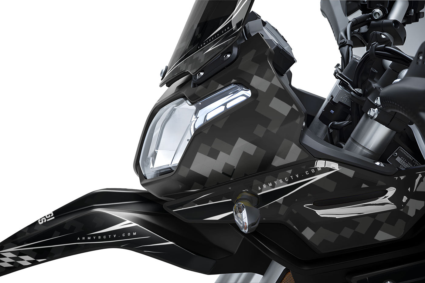 Høykvalitets dekorsett for alle dine kjøretøy: 50cc, 125cc (som her på Beta RR), Motocross, Supermotard, men også El-sykkel og Maxi Scooter. Laget med førsteklasses materialer fra ArmySCTV, sikrer våre klistremerker enkel påføring uten luftbobler og ekstrem slitestyrke. Velg et semi-tilpasset eller skreddersydd design og gi maskinen din en unik stil.