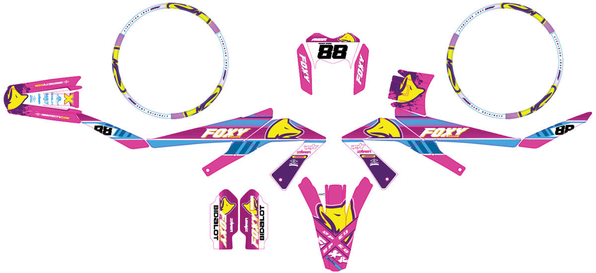 Osez l'audace et l'agilité avec le Kit Déco Pink Fox pour Rieju e-Tango (2024 à 2026). Ce design, vibrant d'un rose néon électrique et de motifs tranchants, souligne le caractère joueur et décomplexé de votre moto électrique. Fabriqué en vinyle premium "Armor" de 450 microns, ce kit déco moto assure une protection infaillible de vos plastiques tout en affichant un look off-road éclatant, assumé et impossible à ignorer.