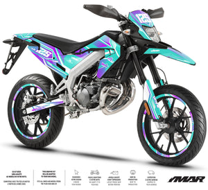 L'Aprilia SX 50 est l'héritière du savoir-faire de Noale, et nos kits déco sont à la hauteur de cette réputation. Nous avons développé des gabarits ultra-précis couvrant l'intégralité des générations de cette machine iconique. Pour les propriétaires d'Aprilia SX et RX (modèles 2006 à 2017), nos kits épousent parfaitement les carénages aux lignes acérées d'origine Derbi. Si vous possédez la version la plus récente, l'Aprilia SX / RX (modèles 2018 à 2026), nos designs intègrent les nouvelles formes de plaques latérales et de garde-boue. En utilisant un vinyle de haute cohésion avec protection UV, nous garantissons que votre kit ne ternira pas, même après des années d'exposition, tout en protégeant vos plastiques contre les frottements et les projections.
