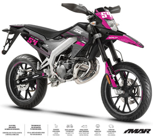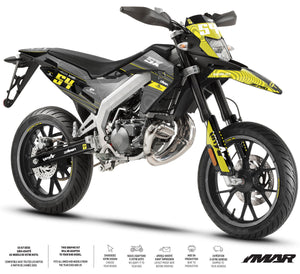 L'Aprilia SX 50 est l'héritière du savoir-faire de Noale, et nos kits déco sont à la hauteur de cette réputation. Nous avons développé des gabarits ultra-précis couvrant l'intégralité des générations de cette machine iconique. Pour les propriétaires d'Aprilia SX et RX (modèles 2006 à 2017), nos kits épousent parfaitement les carénages aux lignes acérées d'origine Derbi. Si vous possédez la version la plus récente, l'Aprilia SX / RX (modèles 2018 à 2026), nos designs intègrent les nouvelles formes de plaques latérales et de garde-boue. En utilisant un vinyle de haute cohésion avec protection UV, nous garantissons que votre kit ne ternira pas, même après des années d'exposition, tout en protégeant vos plastiques contre les frottements et les projections.