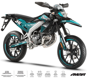 L'Aprilia SX 50 est l'héritière du savoir-faire de Noale, et nos kits déco sont à la hauteur de cette réputation. Nous avons développé des gabarits ultra-précis couvrant l'intégralité des générations de cette machine iconique. Pour les propriétaires d'Aprilia SX et RX (modèles 2006 à 2017), nos kits épousent parfaitement les carénages aux lignes acérées d'origine Derbi. Si vous possédez la version la plus récente, l'Aprilia SX / RX (modèles 2018 à 2026), nos designs intègrent les nouvelles formes de plaques latérales et de garde-boue. En utilisant un vinyle de haute cohésion avec protection UV, nous garantissons que votre kit ne ternira pas, même après des années d'exposition, tout en protégeant vos plastiques contre les frottements et les projections.