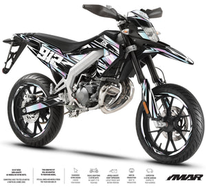 L'Aprilia SX 50 est l'héritière du savoir-faire de Noale, et nos kits déco sont à la hauteur de cette réputation. Nous avons développé des gabarits ultra-précis couvrant l'intégralité des générations de cette machine iconique. Pour les propriétaires d'Aprilia SX et RX (modèles 2006 à 2017), nos kits épousent parfaitement les carénages aux lignes acérées d'origine Derbi. Si vous possédez la version la plus récente, l'Aprilia SX / RX (modèles 2018 à 2026), nos designs intègrent les nouvelles formes de plaques latérales et de garde-boue. En utilisant un vinyle de haute cohésion avec protection UV, nous garantissons que votre kit ne ternira pas, même après des années d'exposition, tout en protégeant vos plastiques contre les frottements et les projections.