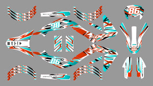 Transformez votre Aprilia SX/RX 50cc avec le kit déco 50cc Tacker, un design audacieux inspiré du sport et de l’aventure. Disponible en brillant, holographique ou chrome, et personnalisable avec des finitions mat, brillant ou paillettes, il donne à votre moto un look unique. Fabriqué avec des matériaux résistants aux intempéries et à l'usure, il assure une durabilité maximale et une installation facile grâce à des découpes de précision pour un ajustement parfait. Un kit déco 50cc idéal pour les amateurs de performance et de style.