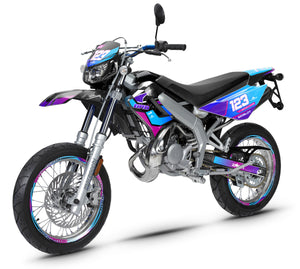 Kit déco Artisse pour Derbi DRD Racing 50cc – design artistique et expressif, impression HD 8 couleurs, vinyle premium ultra-résistant. Finitions variées et personnalisation complète pour un style créatif et percutant.