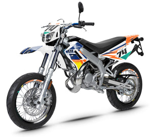 Propulsez le style de votre machine vers de nouveaux sommets avec nos solutions de personnalisation pour Derbi DRD Racing 50cc. Nous avons développé des gabarits d'une précision chirurgicale spécifiquement pour la génération 2004-2010, reconnue pour ses carénages profilés et sa plaque phare unique. Que vous pilotiez une version SM (Supermotard) ou R (Enduro), nos kits épousent parfaitement chaque courbe de vos carrosseries. En utilisant un vinyle haute performance, nous garantissons non seulement une esthétique "Factory", mais aussi une barrière robuste contre les projections de la route, les rayures et le jaunissement dû aux UV.