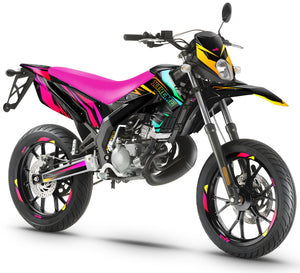 Affirmez votre style avec le kit déco Eclipse ! Inspiré par les éclipses cosmiques, ce design sombre et contrasté aux teintes noires, argentées et violettes donne à votre Derbi Senda X-Treme 50cc (2011-2017) une allure élégante et percutante. Conçu pour résister aux UV, intempéries et rayures, il assure une protection optimale et une installation sans bulles grâce à la technologie FLO. Disponible en finitions brillante, mate, holographique, paillettes cosmic, chrome, texturé et fluo, ce kit déco 50cc transforme votre moto en une véritable icône du supermotard.