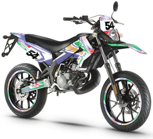 🎨 Kit déco Pastel pour Derbi Senda X-treme 50cc (2011-2017) : Offrez à votre moto un look élégant et raffiné avec ce design pastel, alliant style subtil et protection maximale pour vos aventures en supermotard.