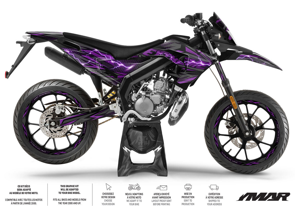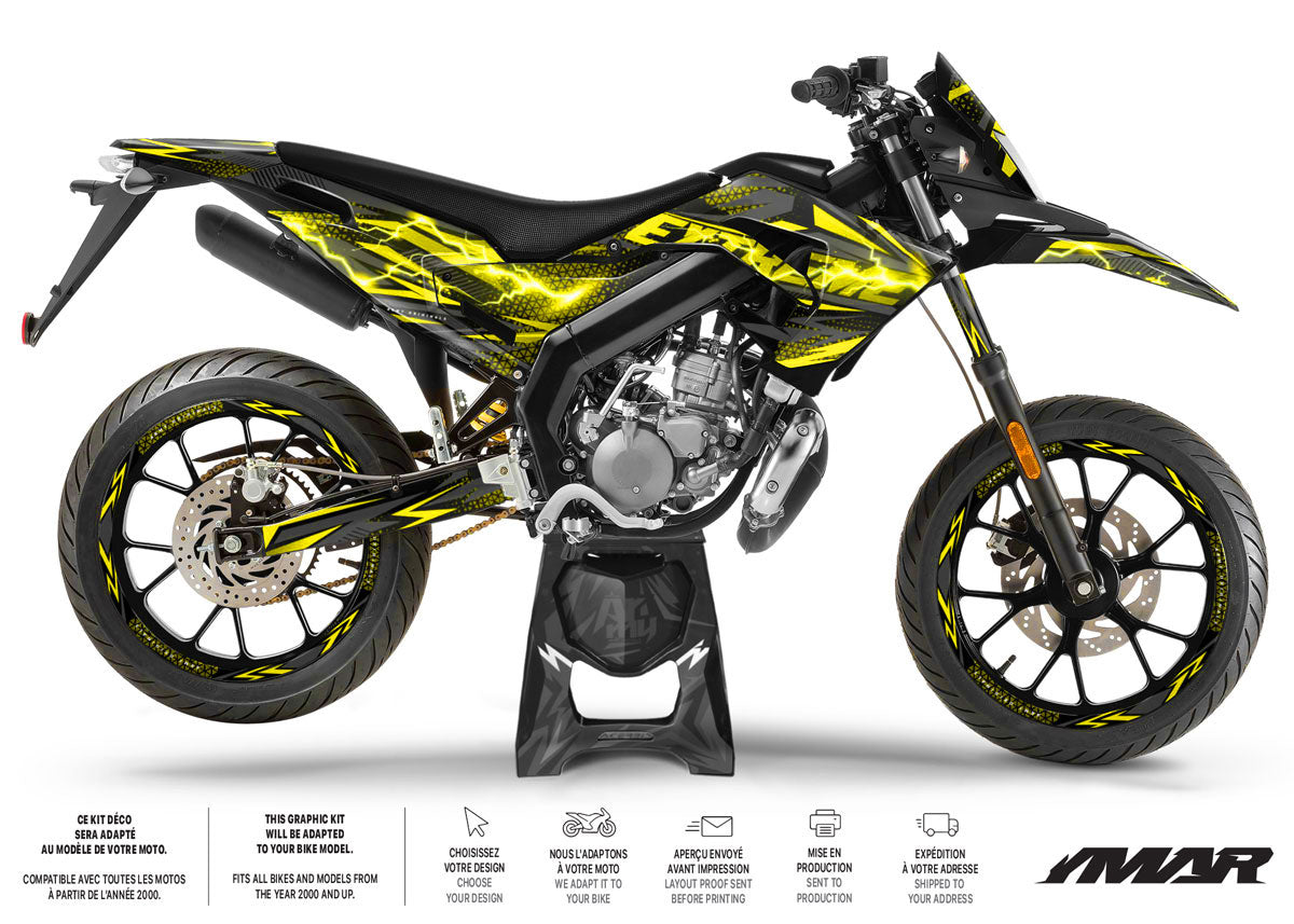 Électrisez votre pilotage avec le Kit Déco Nerve pour Derbi Senda X-Treme et Racing (2018 à 2026). Ce design vibrant joue sur des lignes tendues et des motifs énergiques pour donner à votre 50cc une allure réactive et agressive. Conçu en vinyle premium épais, il assure une protection "armure" à vos carénages tout en garantissant une pose simple et sans bulles.