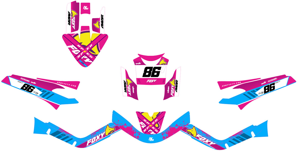 Affirmez votre style avec le kit déco Pink Fox pour MBK Booster RX BCD & Yamaha BW's. Ce design audacieux associe des teintes vibrantes et des motifs dynamiques pour une allure unique et élégante. Fabriqué avec des matériaux ultra-résistants, il protège contre UV, rayures et intempéries. Installation rapide et sans bulles grâce à une découpe précise. Disponible en finitions brillante, mate, holographique et pailletée pour une personnalisation éclatante.
