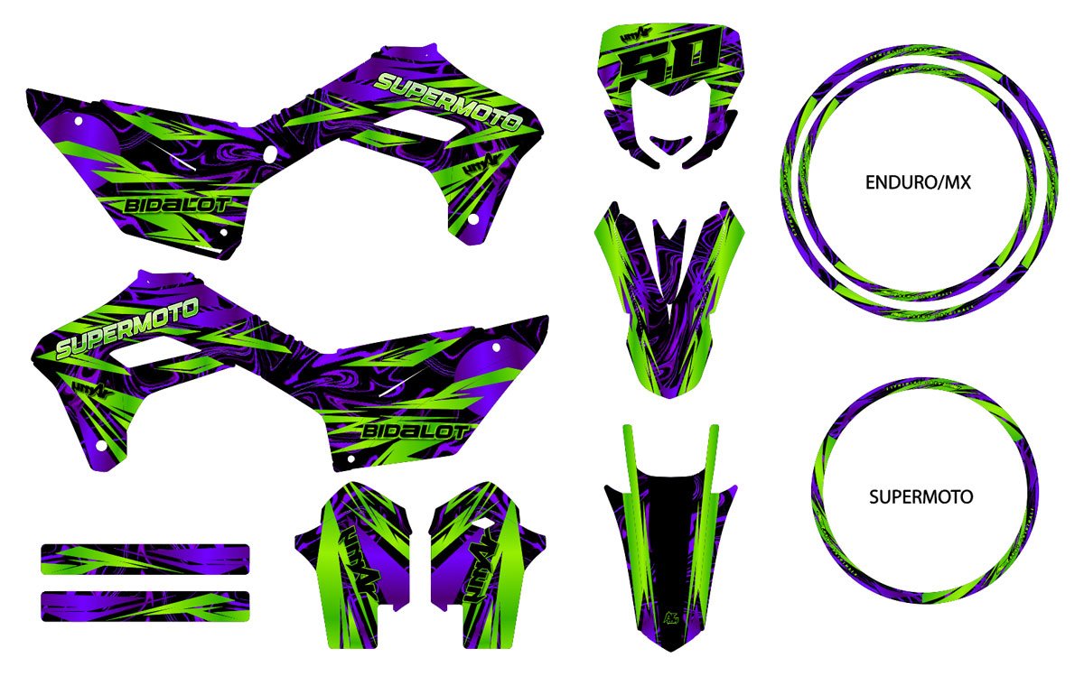 Le kit s'adapte-t-il aux plastiques d'origine et adaptables (UFO, Acerbis, Cycra) ?Nos gabarits sont extrêmement précis. Lors de votre commande, il est crucial de préciser l'année, le modèle exact et si vous avez changé vos carénages pour des marques comme UFO, Acerbis, Polisport ou Cycra. Nous ajusterons les découpes en conséquence pour un "fit" parfait.