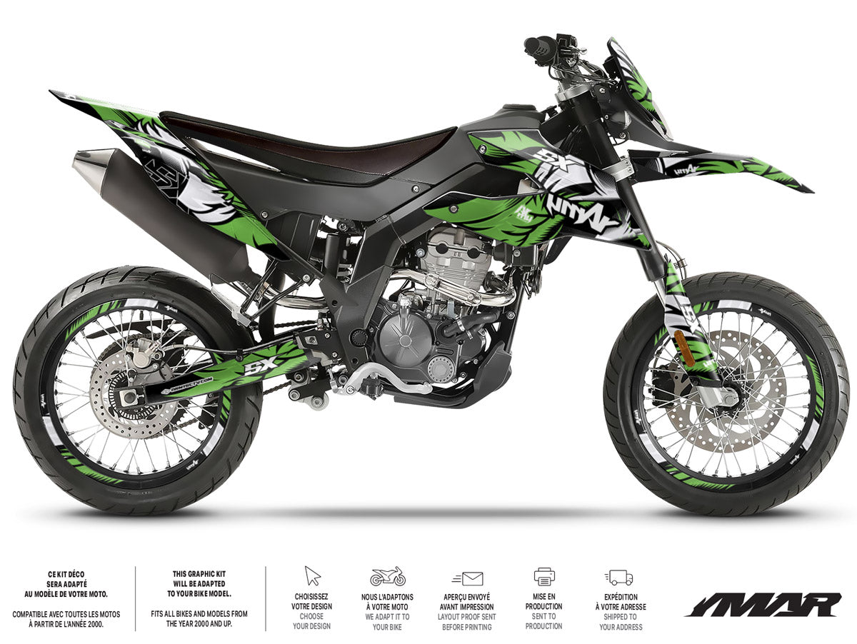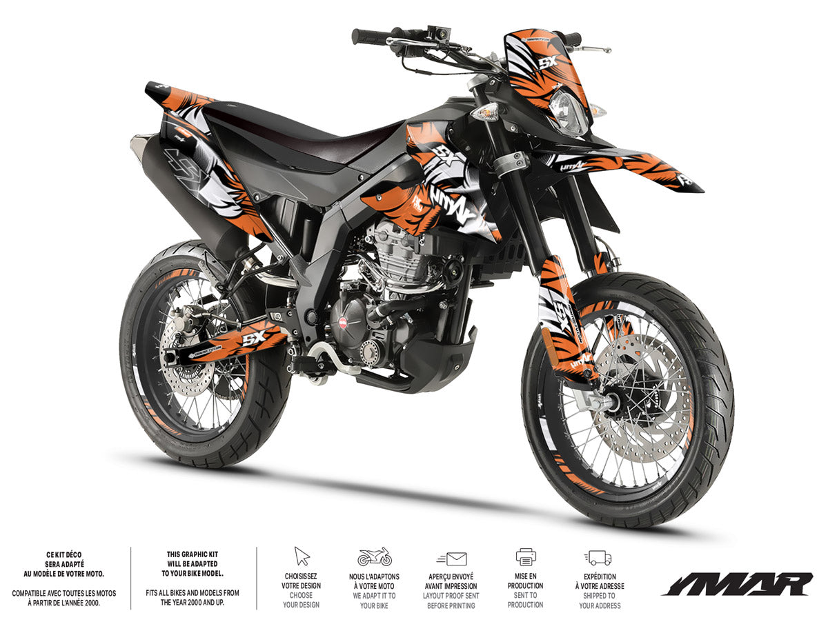 Grâce à des matériaux résistants aux UV et aux intempéries, nos kits déco protègent et subliment votre moto pour plus de 5 ans.