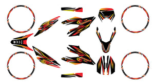 Nos kits complets incluent les ouïes, la plaque phare, les plaques latérales, les garde-boue et les protections de fourche. Nous proposons en option complémentaire des designs assortis pour le bras oscillant et des liserés de jantes personnalisés afin d'obtenir une cohérence visuelle totale sur votre Aprilia.