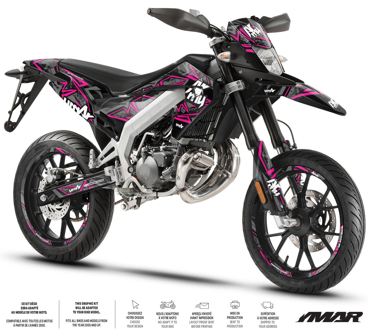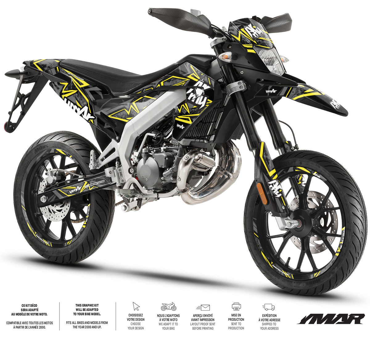 Grâce à des matériaux résistants aux UV et aux intempéries, nos kits déco protègent et subliment votre moto pour plus de 5 ans.