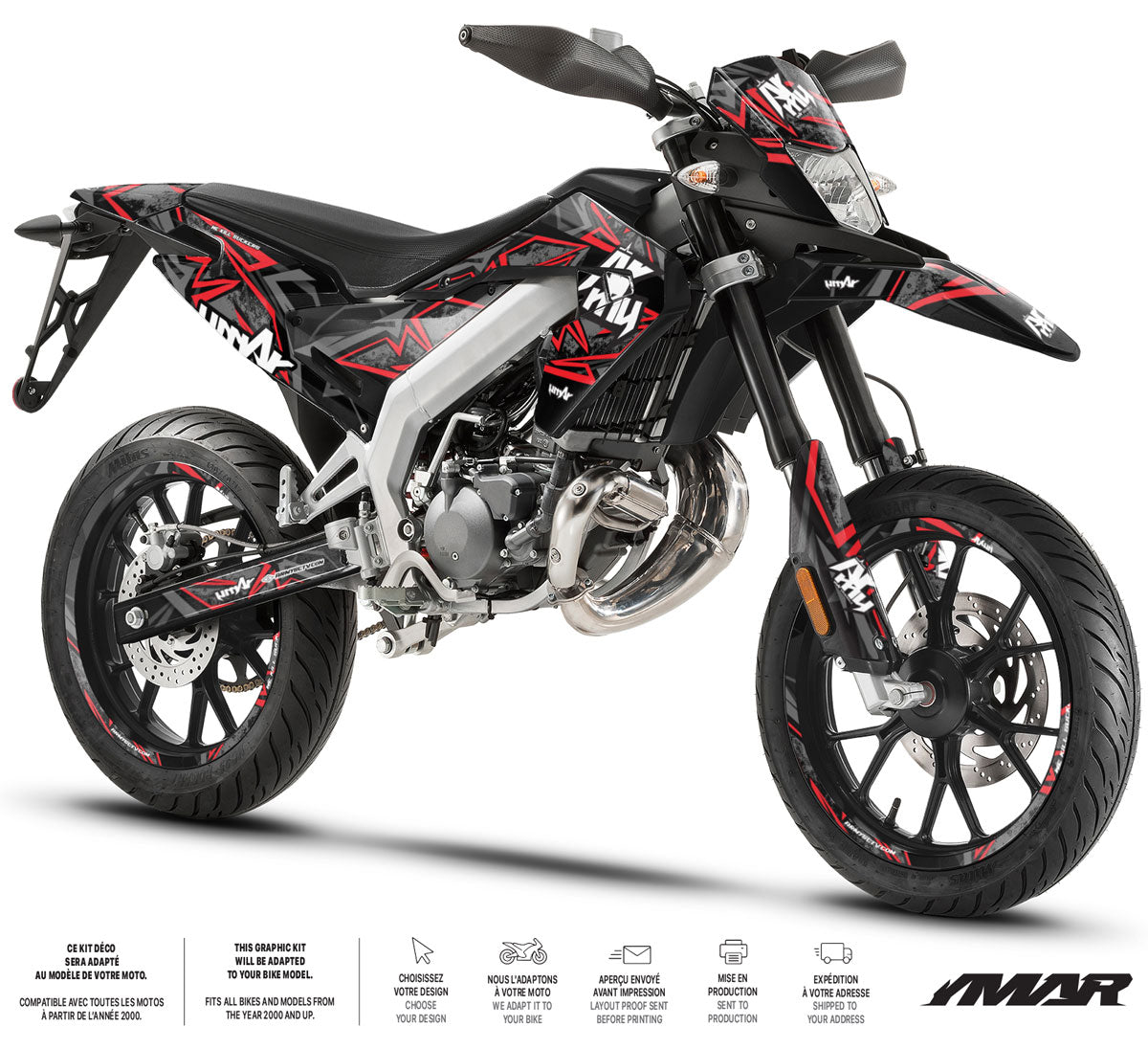 👉 Commandez dès maintenant votre kit déco Aprilia SX 50cc Redrum et transformez votre moto avec un design unique.