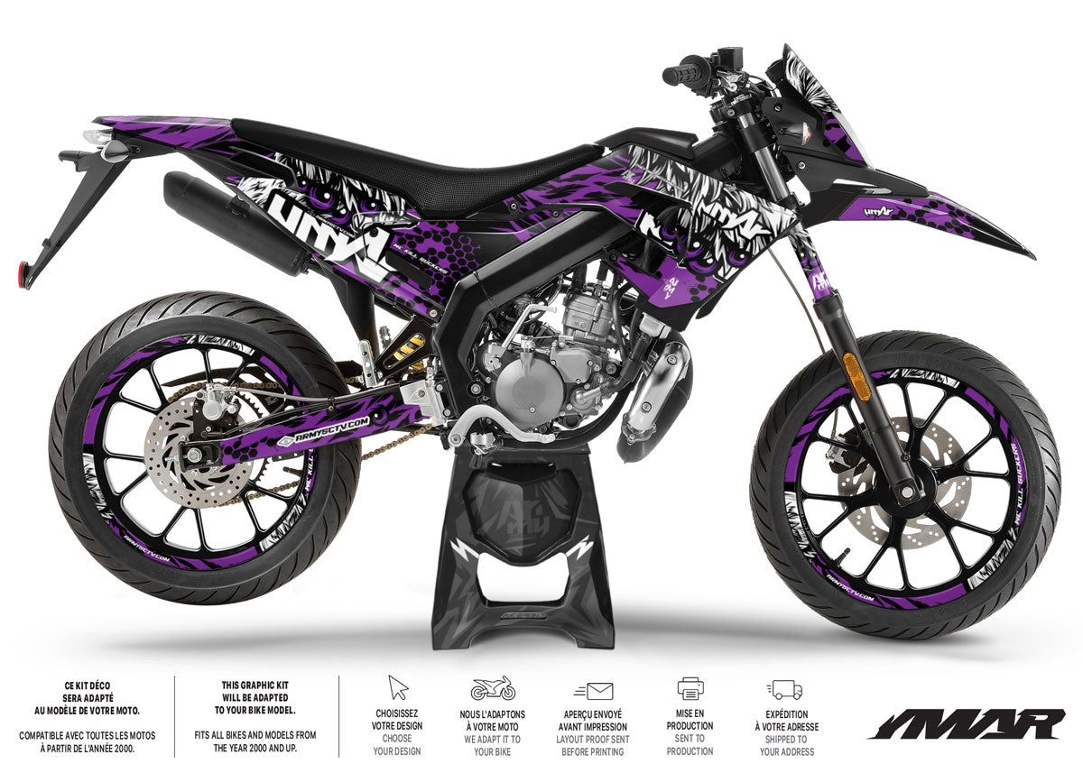 Grâce à des matériaux résistants aux UV et aux intempéries, nos kits déco protègent et subliment votre moto pour plus de 5 ans.