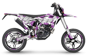 Le Kit Déco Flower Power est destiné aux pilotes qui refusent de passer inaperçus. Loin des lignes géométriques classiques, ce design habille votre Beta RR 125 LC de motifs floraux stylisés et dynamiques. C'est le mélange parfait entre l'univers mécanique et une esthétique fun, fraîche et décalée.