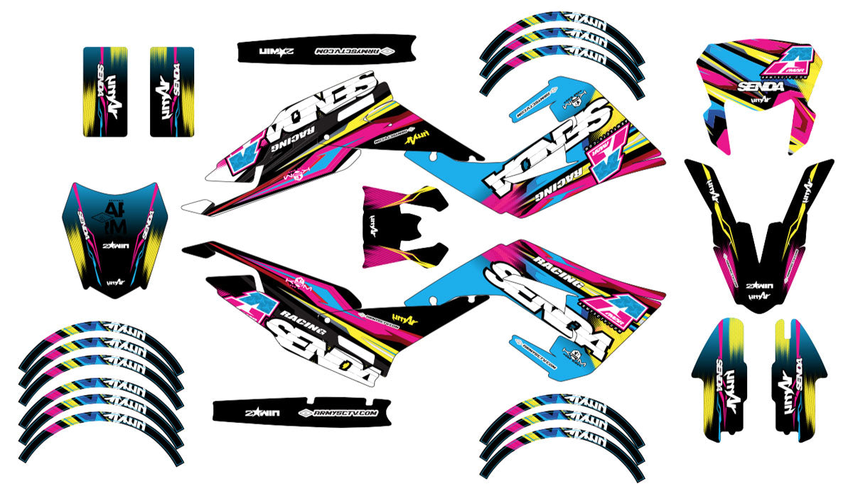 Le Kit déco CMYK pour Derbi Senda X-treme SM 50cc est conçu pour les passionnés de supermotard qui recherchent un design moderne et vibrant. Inspiré des couleurs de l’impression, ce kit déco utilise les teintes primaires cyan, magenta, jaune et noir (CMYK) pour créer un look percutant et dynamique, tout en offrant une protection optimale pour vos trajets sur route et terrains.