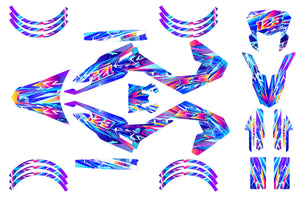 Kit déco Ultra Vector pour Aprilia SX/RX 50cc (2018-2025) – design futuriste et impactant, vinyle premium ultra-résistant, impression HD 8 couleurs. Personnalisation complète et finitions variées pour un rendu unique.