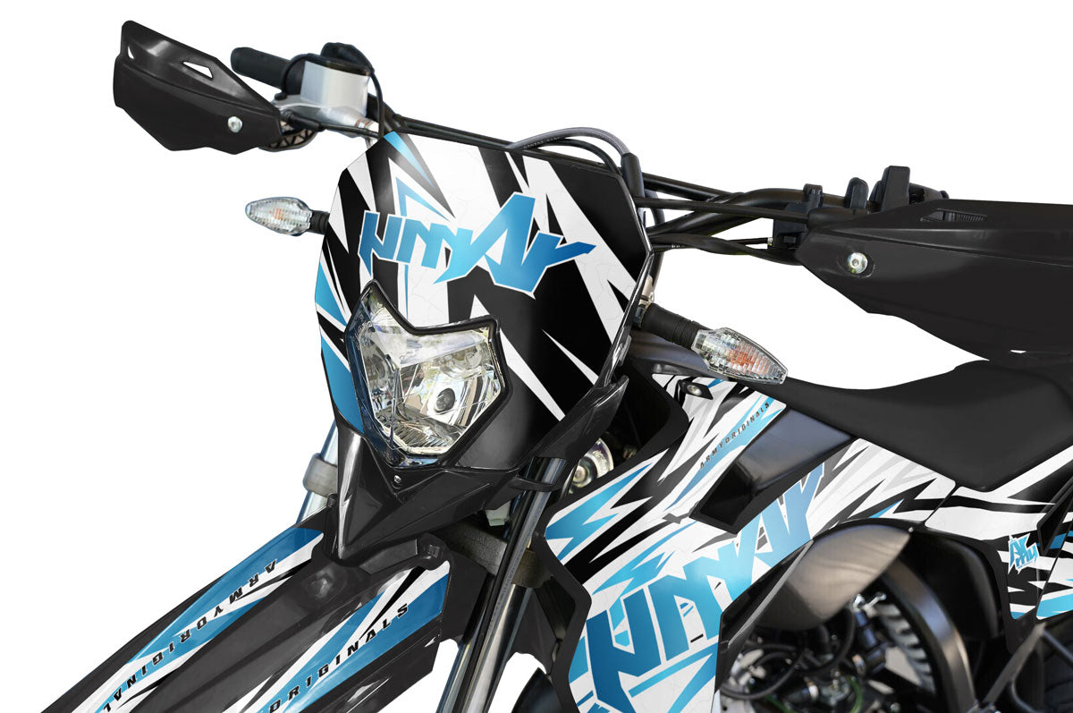 La Sherco 50cc est la référence absolue des jeunes pilotes, et nos kits déco sont conçus pour sublimer ce design racing iconique. Que vous rouliez sur une Sherco SM-R, une SE-R ou les éditions spéciales comme la Blackmoon et la Silver, nous maîtrisons chaque courbe des carénages d'origine. Contrairement à des produits standards, nos gabarits incluent des éléments spécifiques pour les ouïes de radiateur, les plaques latérales, et même les fonds de plaques pour un look d'usine immédiat. Chaque kit déco pour Sherco 50 est fabriqué avec un vinyle épais de haute qualité, offrant une protection robuste contre les projections de gravillons et les rayures quotidiennes, préservant ainsi la valeur de votre moto.
