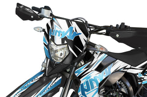 Le Kit Déco Speed pour Sherco 50cc est conçu pour les riders qui ont la course dans le sang. Avec ses graphismes qui suggèrent l'accélération et la fluidité, ce modèle souligne la sportivité naturelle des modèles Sherco SM et Enduro. C'est le kit déco moto incontournable pour donner une allure "Factory Racing" à votre 50cc et dominer le bitume ou les chemins.