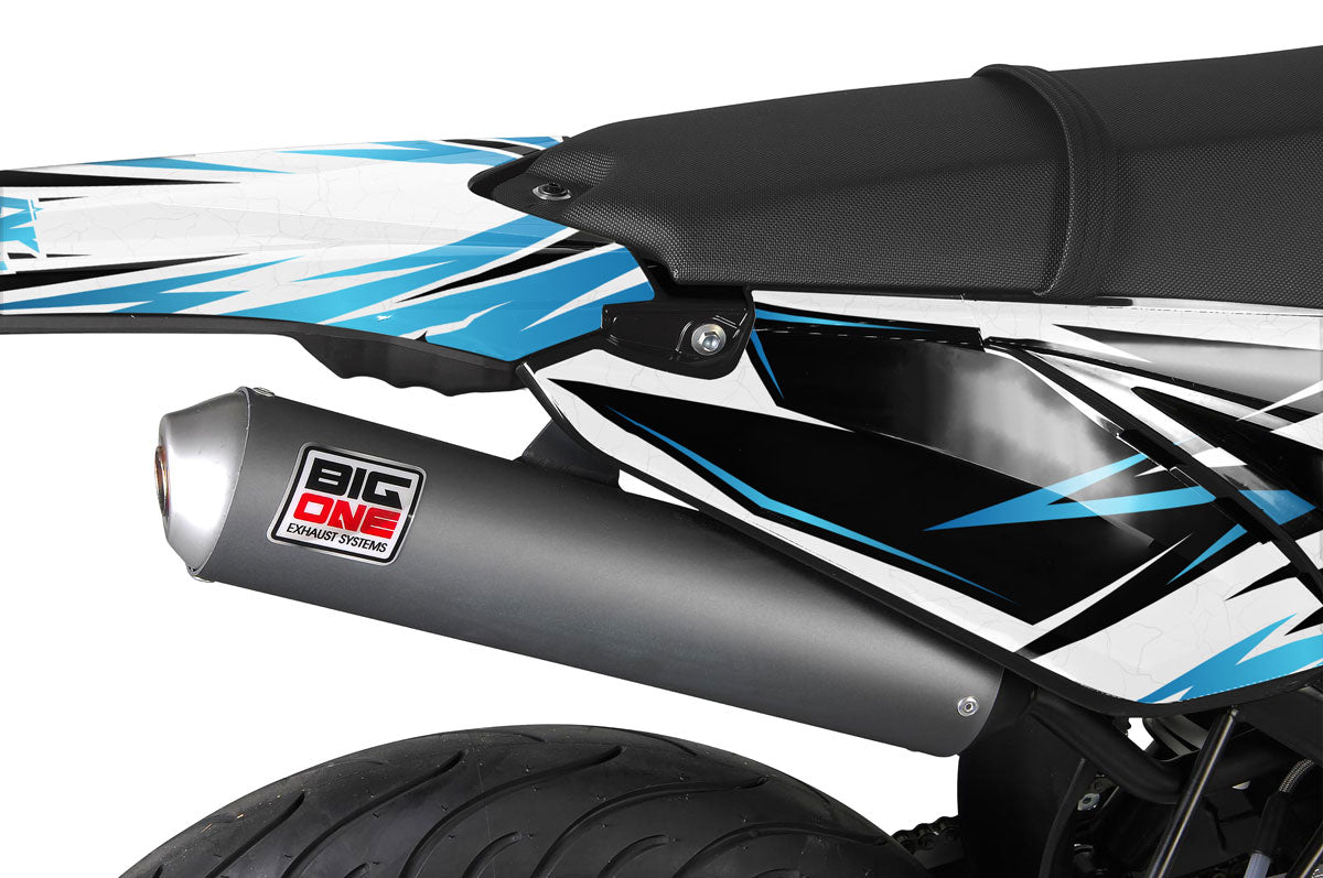 Nos kits complets sont conçus pour les plastiques. Toutefois, vous pouvez ajouter en option des liserés de jantes assortis à votre design pour parfaire le look Supermotard de votre Sherco 50.