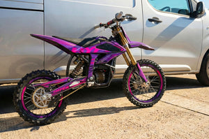 Faites sensation sur le terrain avec le Kit Déco Jade pour Sur-Ron Hyper Bee. Ce design captivant, qui mêle l'intensité du violet à la vivacité du rose, offre un look moderne et énergique à votre mini-moto électrique. Fabriqué en vinyle premium "Armor" de 450 microns, ce kit déco moto assure une protection blindée aux carénages de la Hyper Bee tout en garantissant un style impossible à ignorer.