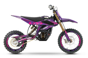 Le Kit Déco Jade pour Sur-Ron Hyper Bee casse les codes. Loin d'être discret, ce modèle mise sur un duo de couleurs ultra-tendance : le **Rose** et le **Violet**. C'est l'habillage parfait pour donner du caractère et une visibilité maximale à la benjamine de la gamme Sur-Ron.