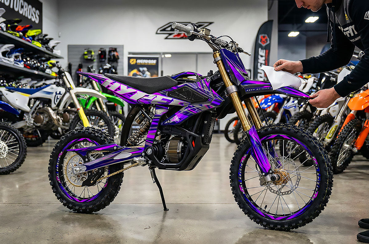 Mettez de la couleur dans vos sessions avec le Kit Déco Purpink pour Sur-Ron Hyper Bee. Ce design audacieux fusionne l'intensité du violet profond et l'éclat du rose néon pour un rendu visuel électrique. Fabriqué en vinyle premium "Armor" de 450 microns, ce kit déco moto offre une protection totale à votre mini-moto électrique tout en affichant un style qui capte instantanément le regard.