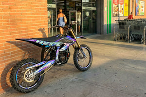 Illuminez le terrain avec le Kit Déco Shiro pour Sur-Ron Hyper Bee. Ce design, inspiré par le minimalisme japonais et la pureté du blanc intégral, offre une allure clinique et futuriste à votre mini-moto électrique. Fabriqué en vinyle premium "Armor" de 450 microns, ce kit déco moto assure une protection invisible mais robuste, tout en donnant un aspect "Factory" impeccable à votre machine.