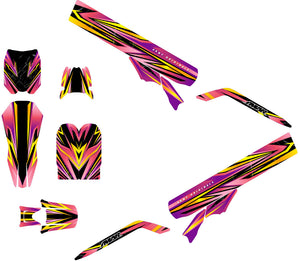 Nos kits de base comprennent les ouïes, plaques, garde-boue et protections de fourche. Nous proposons en option complémentaire des designs assortis pour les bords de jantes et les bras oscillants afin d'offrir une cohérence visuelle totale à votre motocross électrique.