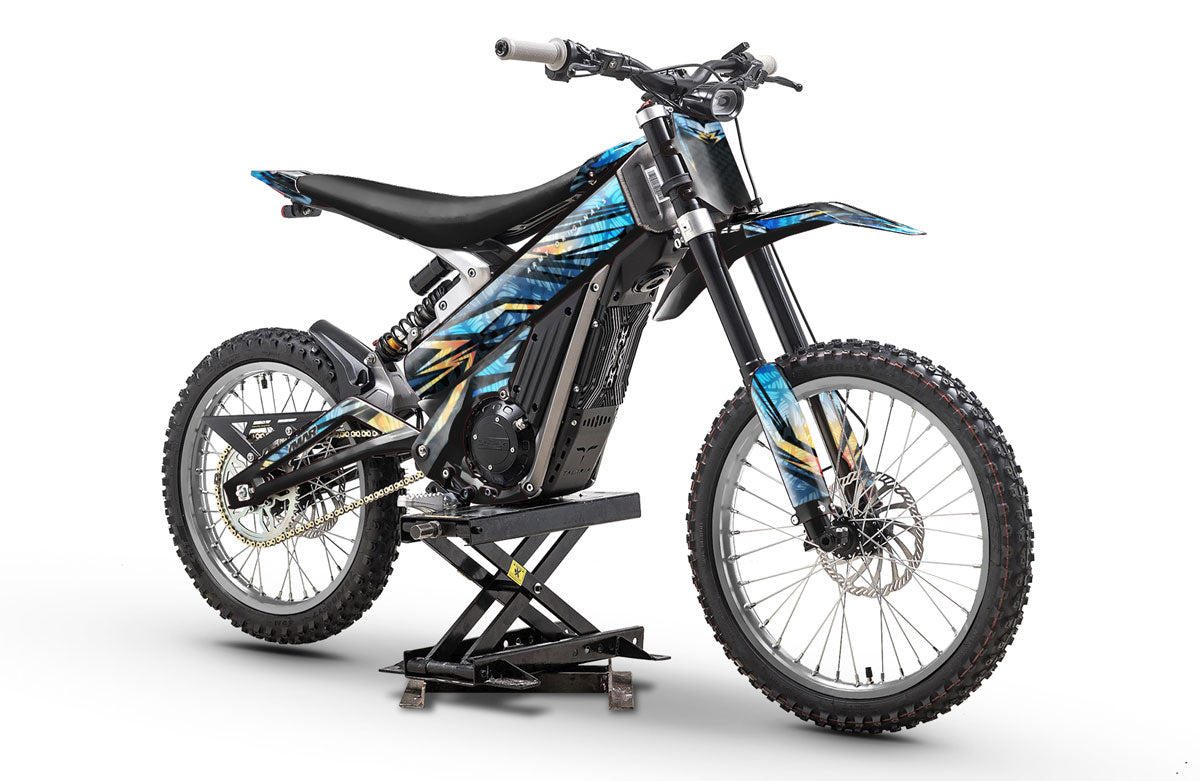 Entrez dans l'ère de la personnalisation 2.0 avec nos habillages graphiques conçus pour les références du marché de la motocross électrique. Nos techniciens ont développé des patrons de découpe exclusifs pour la gamme Talaria Sting (MX3, MX4, MX5), ainsi que pour les versions urbaines et freeride comme la Talaria XXX et la Komodo. Nous proposons également une expertise complète pour les possesseurs de Sur-Ron, avec des gabarits ajustés au millimètre pour la légendaire Light Bee, la puissante Ultra Bee et le modèle enduro Storm Bee. Nos vinyles haute performance protègent vos composants spécifiques et votre cadre des projections de pierres et de l'abrasion lors de vos sessions off-road.