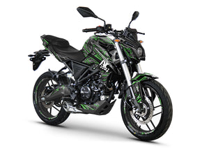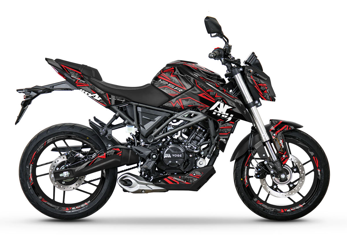 Le design Redrum joue sur la peur et le respect. Il s'articule autour d'un contraste d'une violence inouïe entre un noir profond et un rouge viscéral, imitant des traces de griffes et des projections. C'est la déco Voge absolue pour les riders qui veulent imposer une présence lourde, agressive et totalement assumée à leur 125cc.