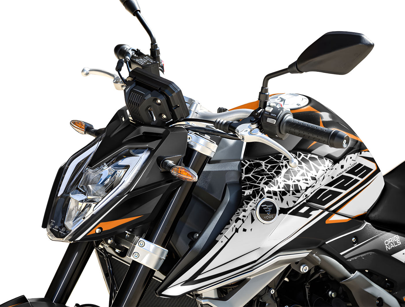 Le Kit Déco Clockwork pour Voge R 625 est une déclaration d'amour à la belle mécanique. La R 625 est un roadster qui expose fièrement son moteur ; avec ce kit déco au design d'engrenages en trompe-l'œil, vous prolongez cette esthétique industrielle directement sur vos carénages pour un effet visuel époustouflant.