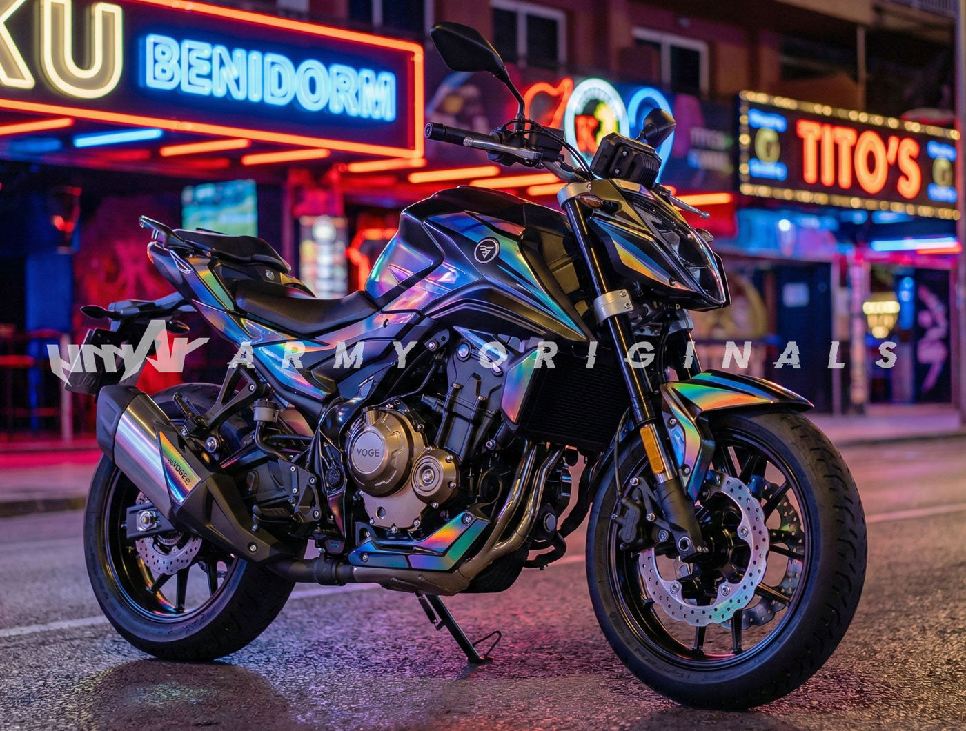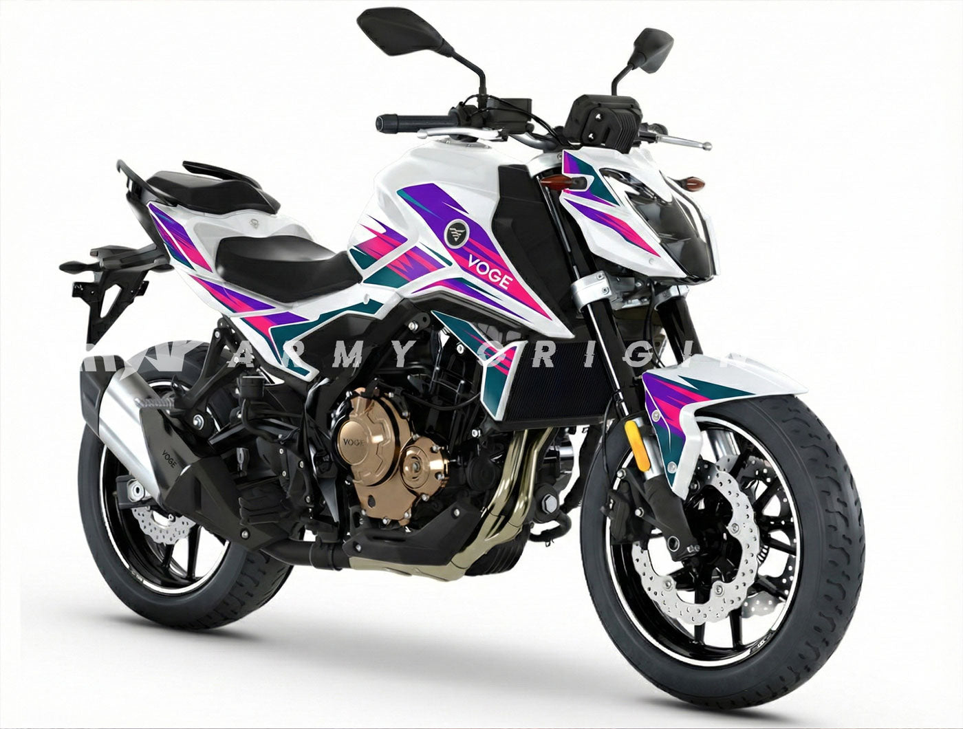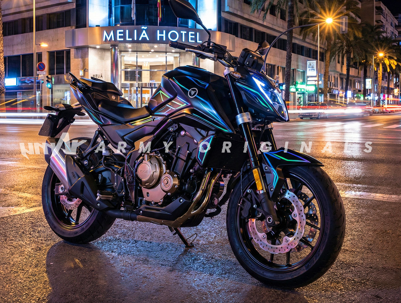 Faites de votre roadster une œuvre unique avec le Kit Déco 100% Sur-Mesure pour Voge R 625 (2025 à 2026). Vous avez une idée précise en tête ? Nos designers lui donnent vie. Couleurs, motifs, sponsors ou lettrages : vous contrôlez chaque détail de votre kit déco moto. Fabriqué en vinyle premium "Armor" de 450 microns, cet habillage personnalisé ne se contente pas de rendre votre Voge exclusive, il offre également une protection pare-balles à vos carénages neufs.